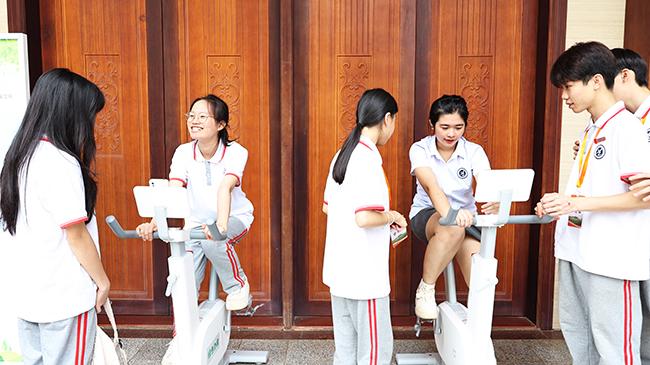 讲座结束后,现场举办了多场科普互动小游戏。垃圾分类小游戏、环保知识问答、环保知识飞行棋,以及减碳骑行体验自发电单车等活动,让环保知识在轻松愉快的氛围中深入人心。