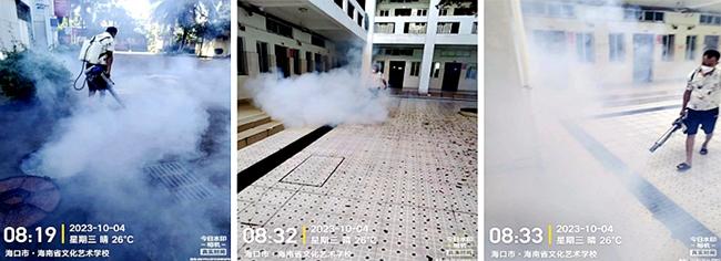 结合实际情况,学校积极发动教职工开展卫生大扫除。以教室、宿舍、公共洗手间、操场、垃圾收集处、绿化带、贮水器、储物间及下水道等蚊虫栖息地和繁殖场所为重点,请防疫专业人员进行灭蚊消杀工作。