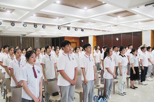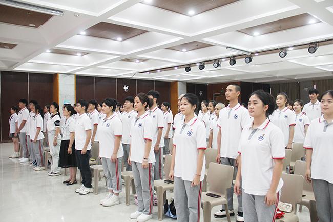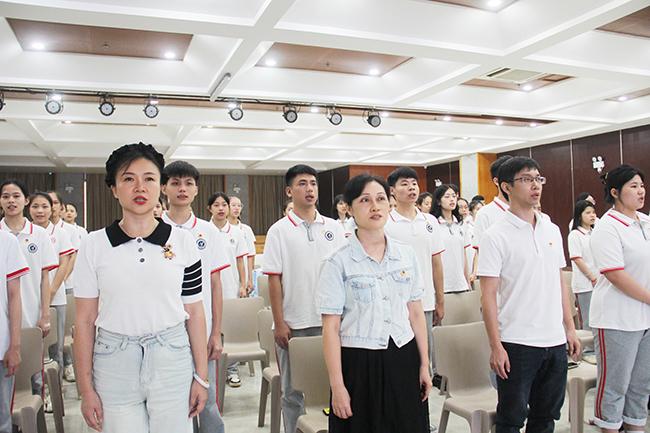在嘹亮激昂的国歌声中,sunbet2024年新团员入团仪式拉开了序幕,全场师生肃然而立,高唱国歌。