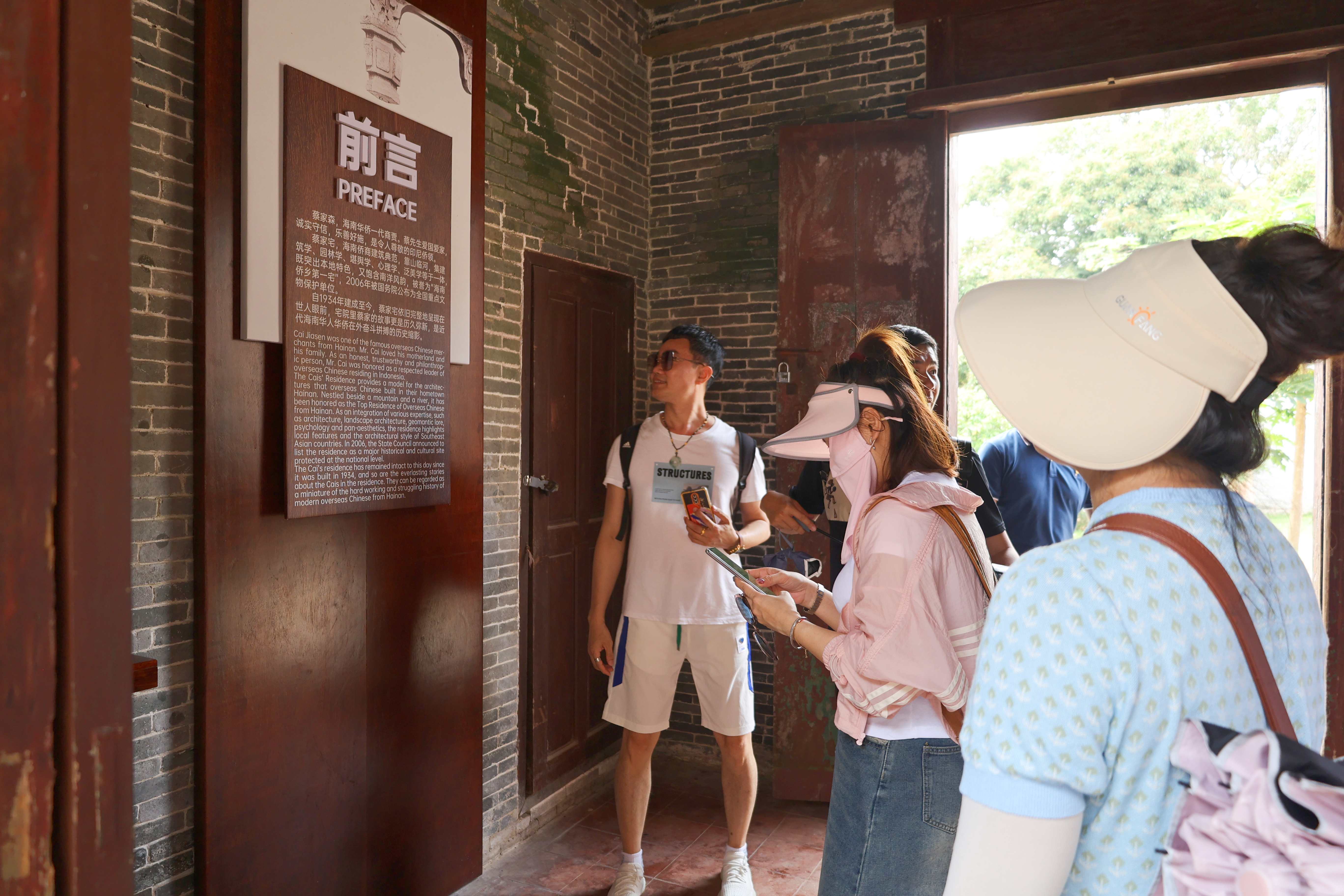 活动第一站,职工们来到了位于琼海市博鳌镇的留客村,参观了被誉为“海南侨乡第一宅”的蔡家大院,深入探访侨乡文化、南洋文化。蔡家宅是中西合璧青砖彩墙建筑,在海南本土建筑的基础上体现着浓郁的南洋风格,青砖黛瓦下是蔡家人对故乡的热爱和祖先的敬畏。通过参观蔡家宅,职工们了解到建筑建设的时间、背景和影响,以及其中的历史故事,感悟以蔡家人为首的华侨们回报家乡、热爱祖国的家国情怀。