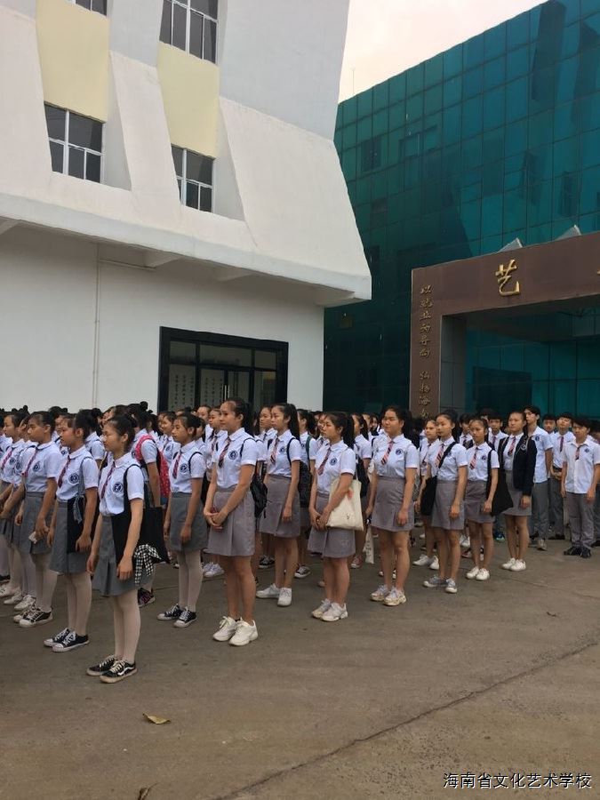 4月21日上午7:00,三百多名学生身着校服,整齐有序的上车,前往海口市体育馆进行联排