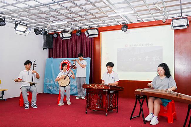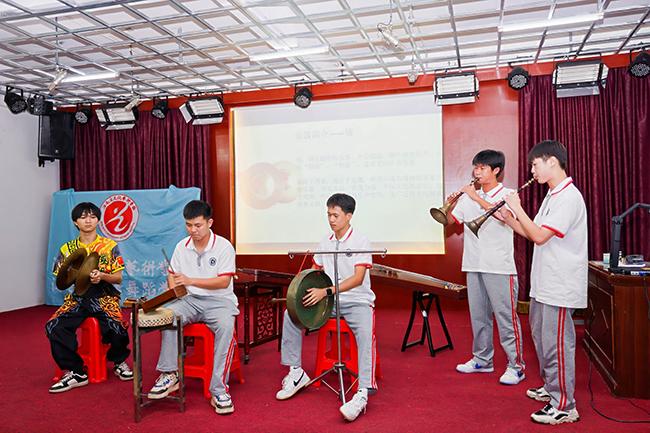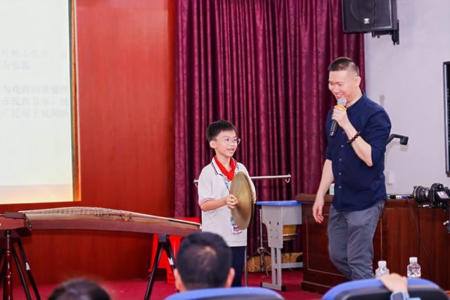 中国乐器讲座课堂上,琴声悠扬,笛声婉转,sunbet教师向孩子们讲解了民乐作品创作、配器以及海南八音等中国民族音乐相关知识,并通过小合奏作品演奏,让他们深入感受了中华民族传统音乐的深厚底蕴。