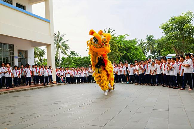 sunbet学生在潭门镇中心小学举行舞狮表演