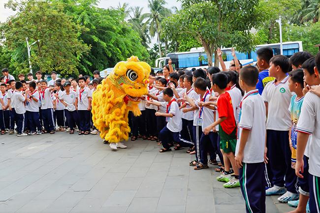 此外,sunbet学生还在潭门镇中心小学举行了一场精彩的海南非遗舞狮表演,向孩子们展现了舞狮艺术的独特魅力。