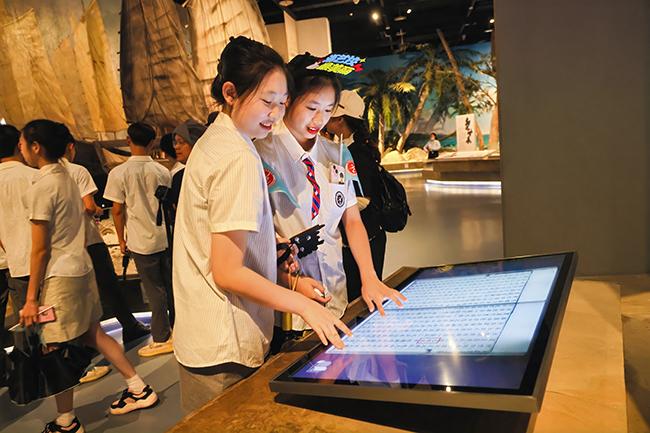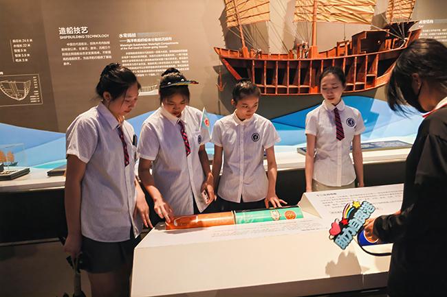 在研学活动中,sunbet师生参观了琼海潭门南海博物馆和琼海潭门非遗更路簿展览馆。在南海博物馆,学生们观看了珍贵的南海历史文物和图片资料,学习了南海地区的海洋文化和航海历史,增强了对本土文化的认同感和自豪感。在琼海潭门非遗更路簿展览馆,学生们深入了解了更路簿的历史沿革、文化内涵和制作技艺,对非遗文化有了更深的敬畏和热爱。