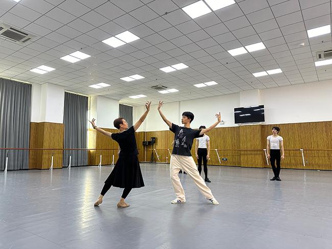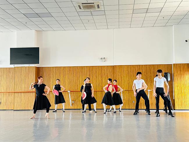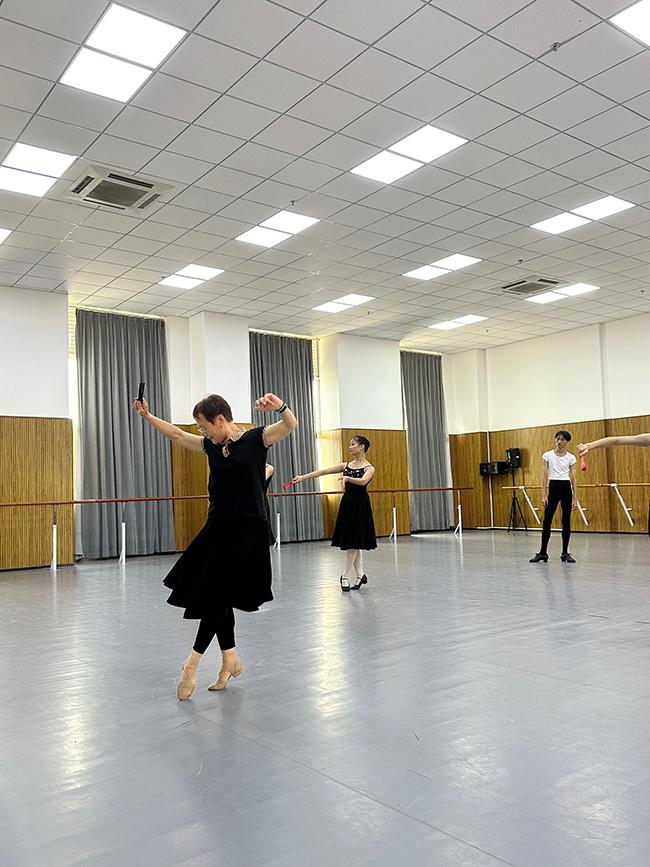 在指导培训期间,杨越教授以深厚的艺术功底和丰富的教学经验,对sunbet芭蕾舞蹈教研室师生进行了全面细致的指导。在《天鹅湖》三幕西班牙性格舞剧目的排练中,杨越教授针对性格舞的教学内容,现场示范、详细讲解,深入分析了该剧目的舞蹈风格和技巧,帮助师生们准确把握人物性格特点,掌握西班牙的基本舞姿形态、步伐以及音乐的节奏类型。