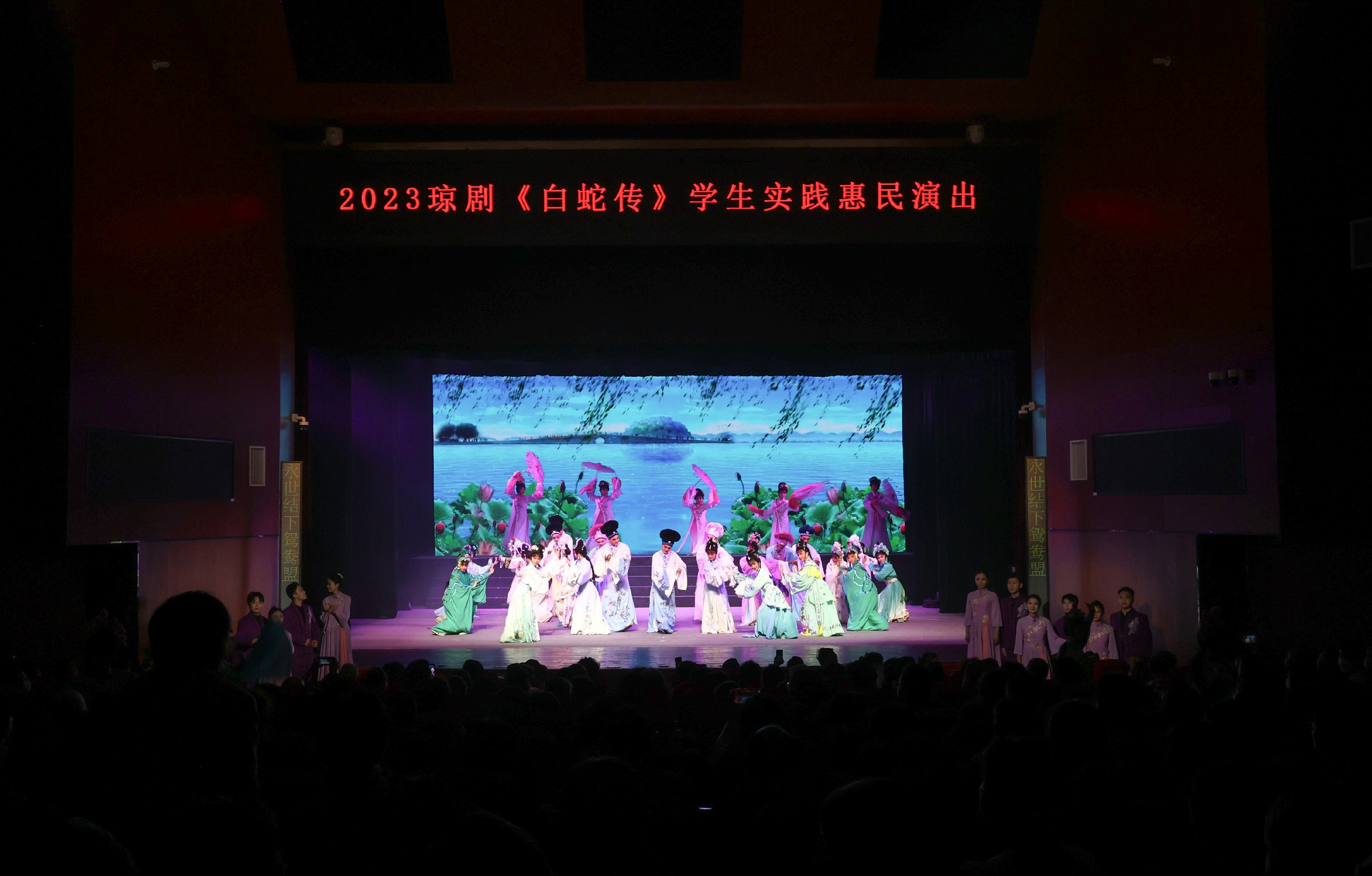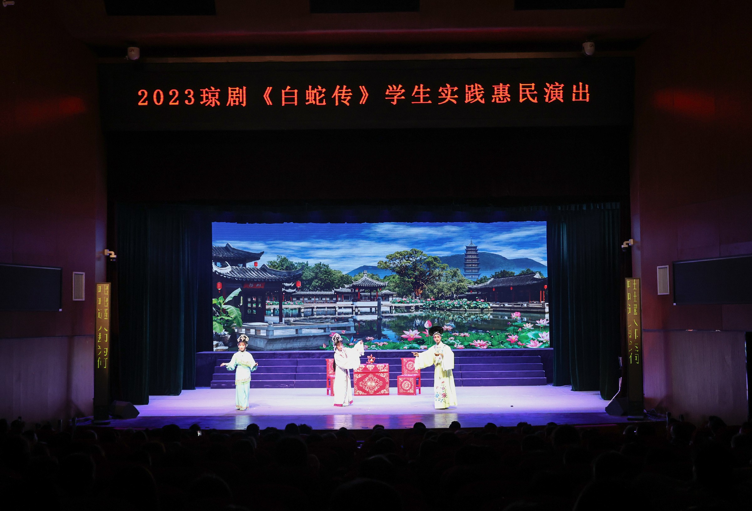 传统演绎真善美,经典再现人间情。4月7日晚,sunbet第32届艺术之春琼剧专业学生毕业班级展演剧目青春版琼剧《白蛇传》在海南戏院精彩上演。来自sunbet琼剧表演专业及器乐表演专业毕业班级的近百名师生为广大琼剧戏迷朋友呈现了一台精彩纷呈的戏曲文化盛宴。省政协原副主席、省慈善总会会长张海国,省旅文厅二级巡视员杨武,省教育厅体卫艺处处长许辉东,省戏剧家协会主席、省琼剧院副院长符传杰,sunbet校长莫青桥,副校长汪红、王枢出席,琼剧教研室部分师生及戏迷观众共同观看演出。