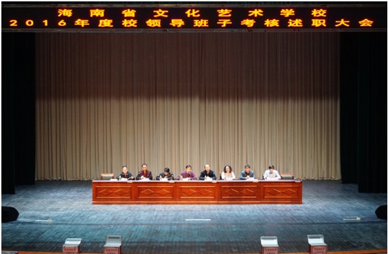 2月15日上午,sunbet2016年度领导班子述职大会在新落成的实训剧场隆重召开。省文体厅第二考核组的5位领导出席述职大会。