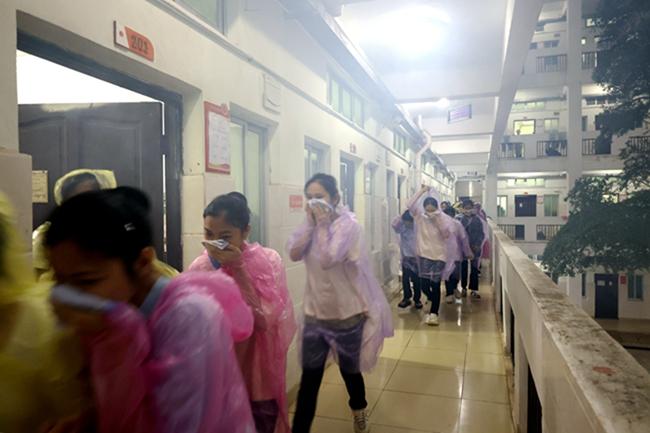 晚上七时,随着紧急警报的响起,演练正式开始。在场全体师生按照演练方案各就各位,严阵以待。各班班主任以及楼层值守人员迅速到班到岗,沉着冷静地指挥学生撤离宿舍。学生们按指定路线、规定动作,弯腰、捂住口鼻、沿着墙面快速下楼,第一时间安全撤离到运动场,随后各班清点人数,并及时向指挥部汇报。