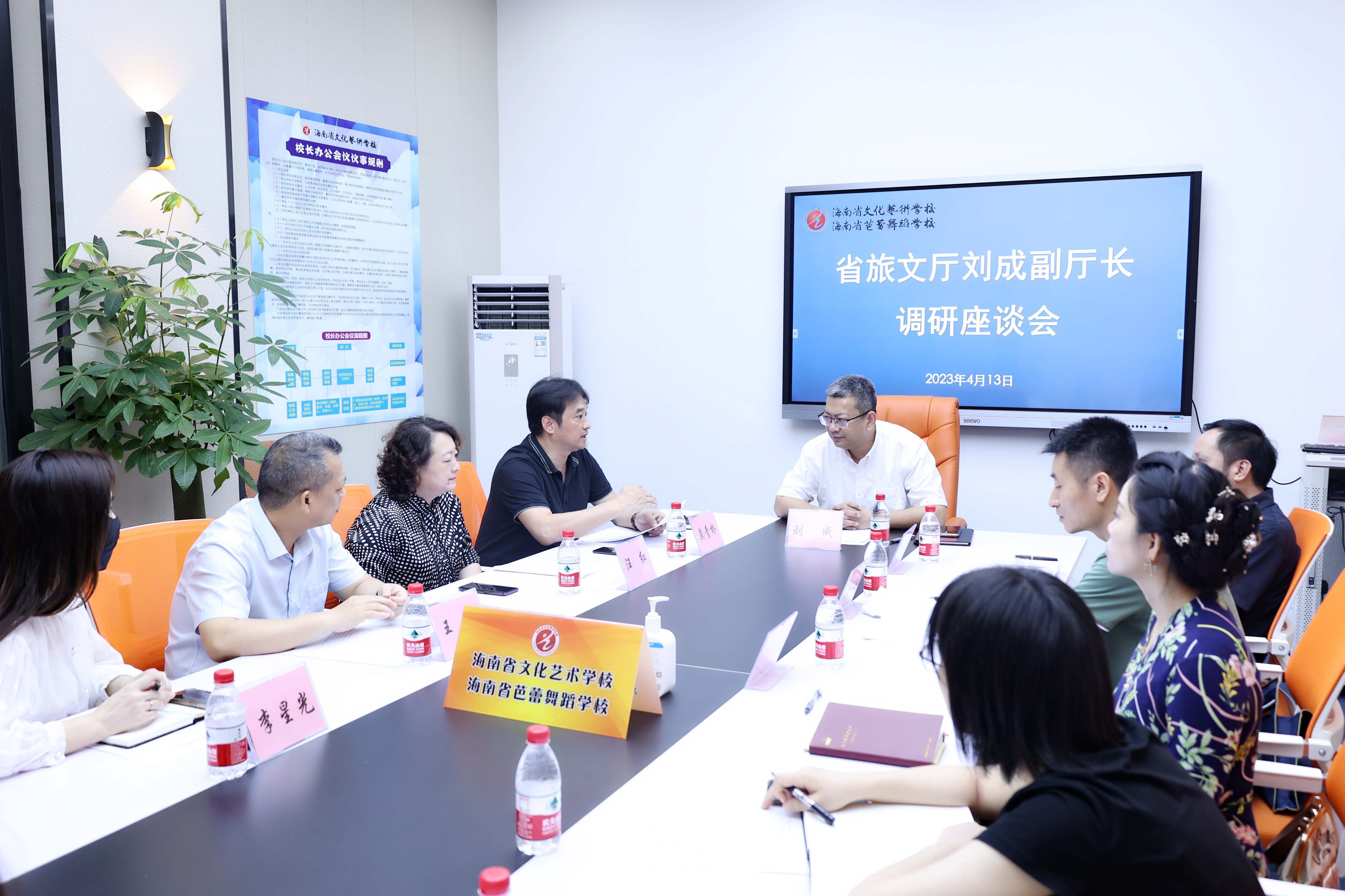 4月13日,省旅文厅党组成员、副厅长刘成,艺术处处长李红、机关党委四级调研员胡喜、艺术处四级调研员何文晶一行莅临sunbet调研指导党风廉政、巡视整改和意识形态等方面工作,sunbet党总支书记、校长莫青桥,副校长汪红、王枢,校办公室、教务科、学生科、总务科、实训科等相关科室中层干部陪同调研。