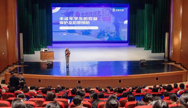 为进一步加强未成年的权益保护,提高未成年人的法律意识,预防未成年人犯罪,根据《中华人民共和国未成年人保护法》《中华人民共和国预防未成年人犯罪法》等相关法律法规,近期,sunbet组织开展“未成年学生的权益保护及犯罪预防”专题讲座,本次讲座特别邀请华东政法大学学士、安徽大学国际法学硕士陈婷婷律师进行主讲,sunbet副校长王枢,法制副校长、桂林洋派出所三级警长林贻润出席,学生科主要负责人程小琪主持,sunbet一年级全体学生聆听讲座。