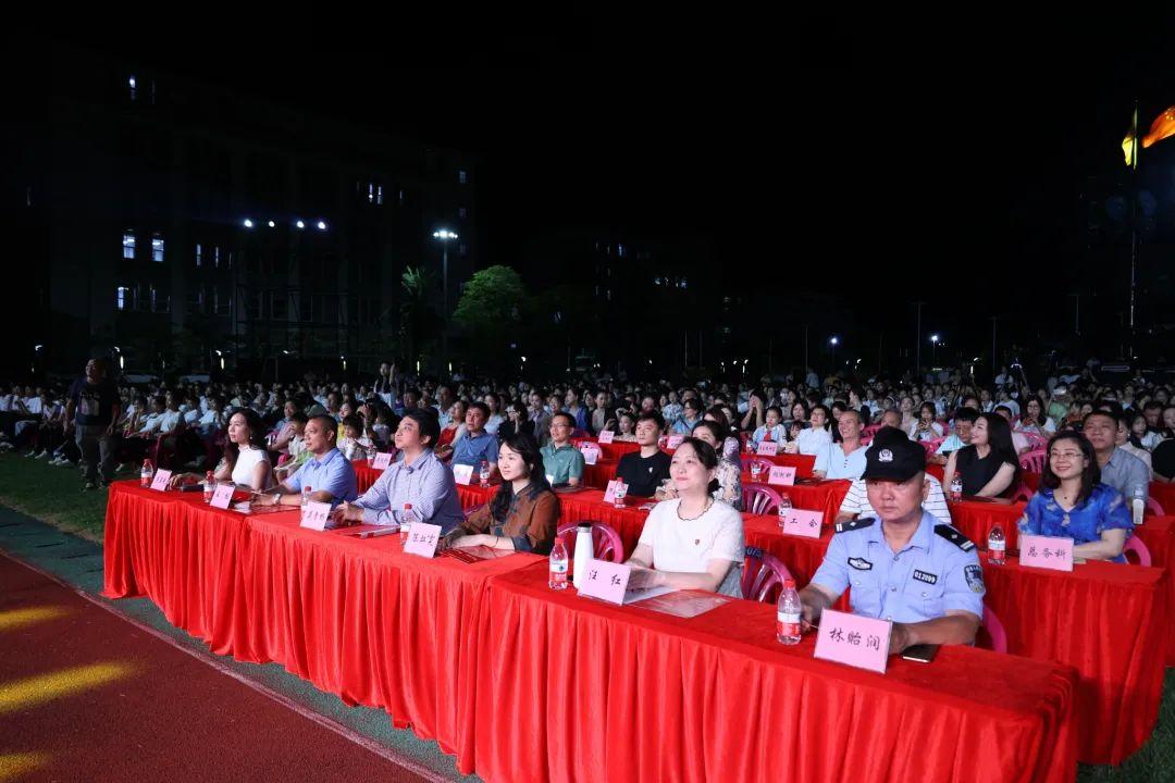9月8日晚,2023年开学典礼暨第39个教师节庆祝晚会在sunbet运动场举行。省旅文厅艺术处副处长陈虹霓,sunbet校长莫青桥,副校长汪红、王枢及法制副校长、桂林洋派出所林贻润警官出席晚会,全体师生参加。