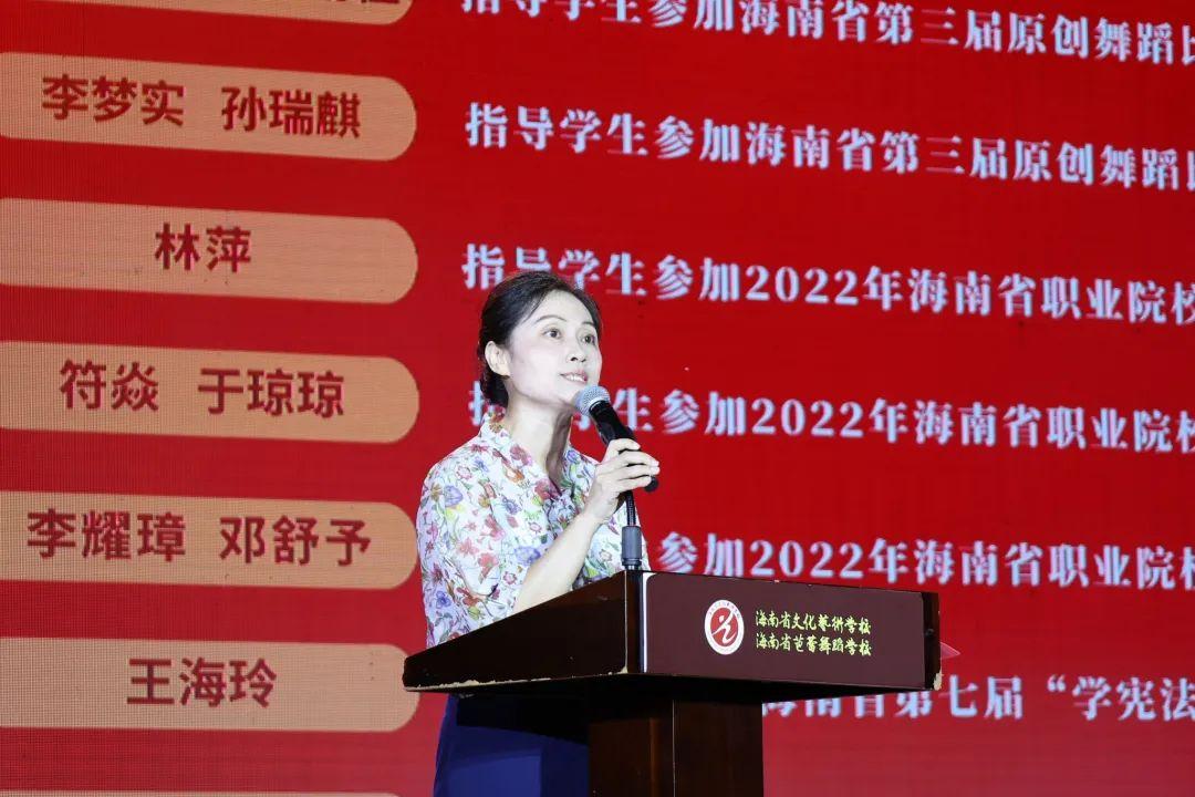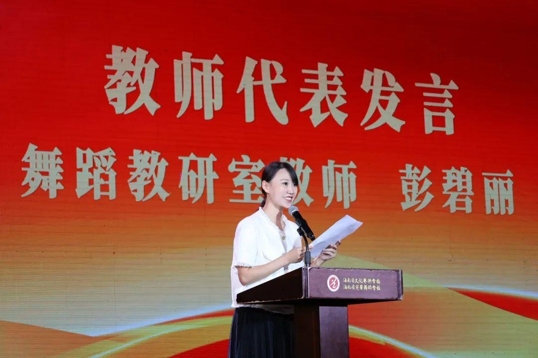省旅文厅艺术处副处长陈虹霓表示,近年来省旅文厅在建设省内艺术文化教育、推动艺术惠民的过程中,一直将统筹文化艺术教育发展作为一项重要的工作来抓。在省艺校未来的前进道路上,希望学校领导班子要勇挑重担,敢于创新,把班子建设成为有凝聚力、有战斗力的团队。全校师生要齐心协力,励精图治,努力把学校建设成国内一流的艺术学校,为海南省自由贸易港文化艺术软实力建设谱写更美好的华章。