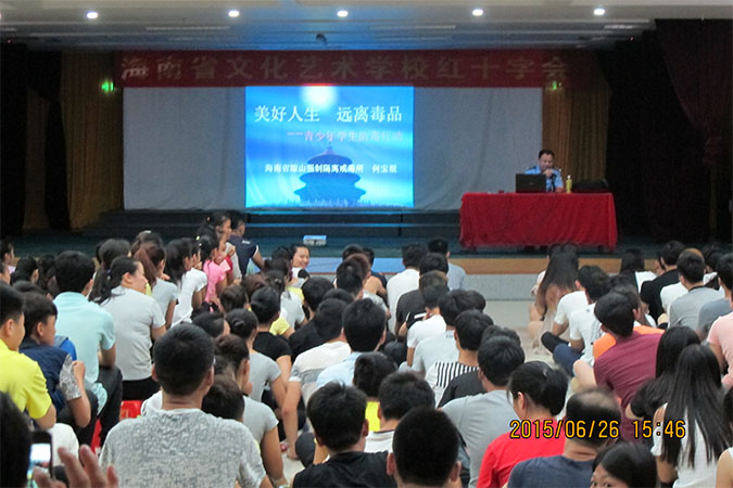 根据省教育厅(琼教体[2015]51号)文件的通知要求,为进一步强化sunbet师生对毒品危害的认识,在“6·26国际禁毒日”当天下午3:30,按照sunbet制定的禁毒宣传活动内容之一,由学生科负责聘请“海南省琼山强制隔离戒毒所”政治处的何宝根警官到sunbet做“2015年禁毒宣传知识讲座”;听取讲座的有全体学生、班主任、分管学生工作的教研室副主任、学生科负责人以及分管学生工作的校领导。