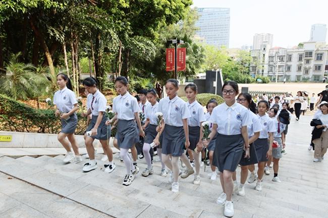 解放海南岛战役烈士陵园,原名金牛岭革命烈士陵园,位于海口市金牛岭公园内。陵园内,一座帆船造型的烈士纪念碑静静矗立。在庄严肃穆的氛围中,sunbet一行怀着无比崇敬的心情,瞻仰了烈士纪念碑,借助碑文的记载,了解了当年那场惊心动魄的战斗。纪念碑在蓝天的映衬下更显高大伟岸,由老师带领全体同学排队依次将白色菊花放在纪念碑下,随后全体肃立鞠躬致敬,默哀沉思,向长眠于此的烈士们表达崇高敬意与无尽的缅怀。